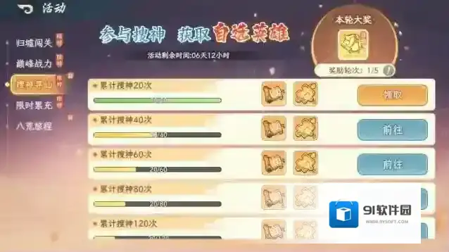 活动说明:前往搜神台进行搜神,完成搜神任务可获得额外搜神画卷和传说英雄;