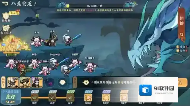 活动说明:挑战八荒灾厄boss-相柳,上阵强力英雄,选择合适的加成buff,不断提升挑战伤害;可获得搜神画券、传说英雄碎片、自选传说英雄等丰厚奖励。