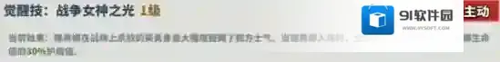 描述:雅典娜在战场上杀敌的英勇身姿大幅度鼓舞了我方士气。当雅典娜入场时,全体友方单位获得基于雅典娜生命值的30%护盾值。