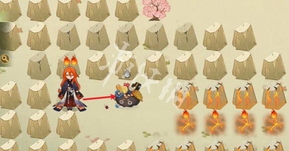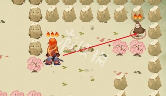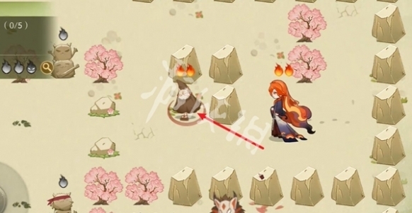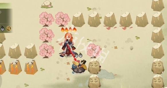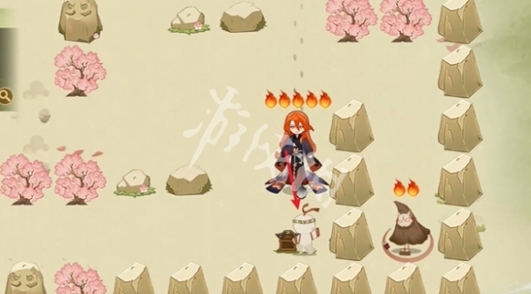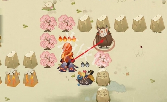 3、往左走,击败小怪,阵容为武士+座敷+狸猫(锁3技能)+凤凰火+鬼使白。