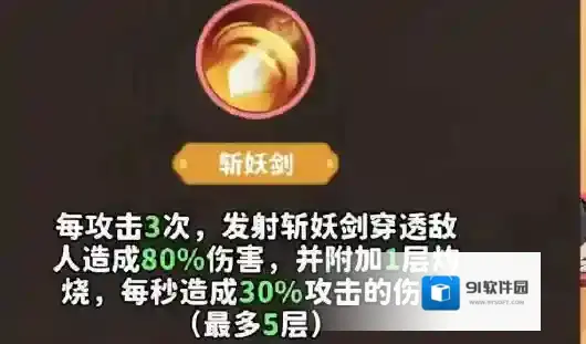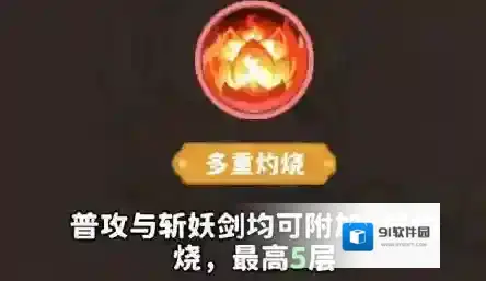 普攻与斩妖剑均可附加1层灼烧,可以更快地给敌人把灼烧层数叠满。