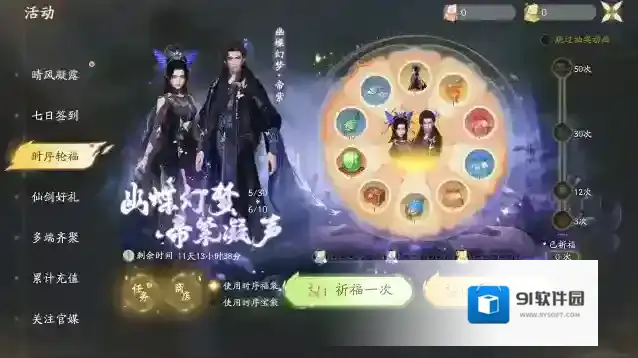 新外观幽蝶幻梦·帝紫将在新上线活动时序轮福中抽奖获得,活动时间为5月30日到6月8日,持续10天,活动期间仙友可通过消耗时序宝袋或时序福袋进行抽奖,时序宝袋通过任务获得,时序福袋可在商店购买。