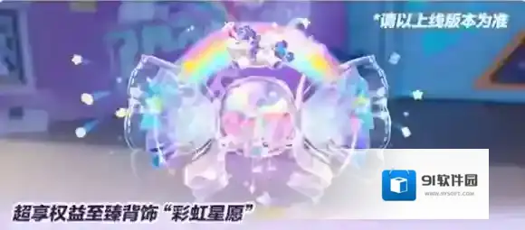 1、6月27日,全新终身累充奖励–蛋仔首款超享权益至臻背饰“彩虹星愿”亮相。