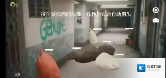 5、第三章一楼住客电话投诉楼道垃圾太多,选择清理垃圾,左手边墙上。