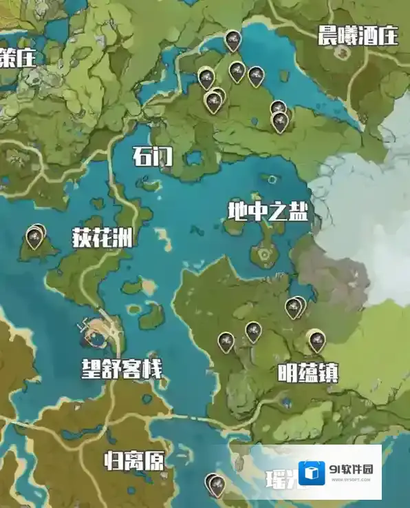 5、石门、明蕴镇、荻花洲、瑶光滩附近。