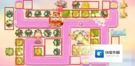 6、具体炮塔如下图,第五波之后补充便便,打完仙女之后,桃树附近回旋镖全部锁定桃树,如果有滑板兔,记得锁定。