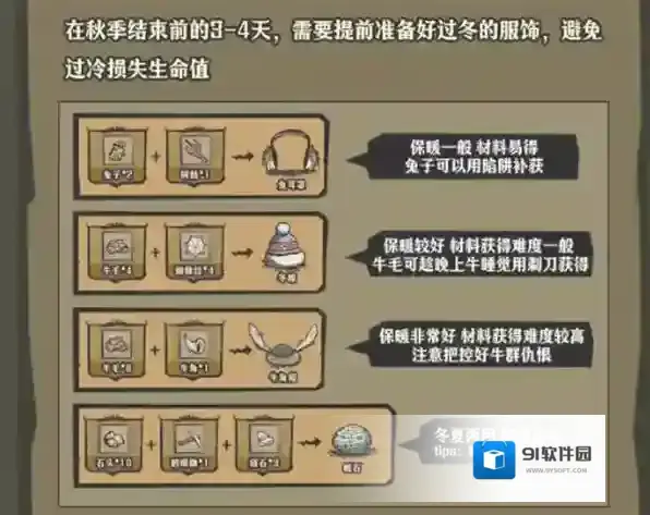 在秋季结束前的3-4天,需要提前准备好过冬的服饰,避免过冷损失生命值