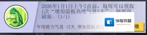 活动期间每周可以领取专用能力气息(7天增加篮板高度),让各位玩家的角色更加强力!