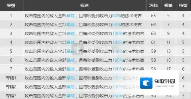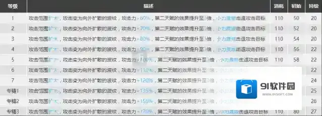 决战技。单看输出是有资本和火山以及真银斩掰手腕的技能,可惜由于群法较低的攻速导致实际输出相比其他决战技稍低一些,不过三技能也有自己的优势所在:三技能没有攻击数量上限,也就是说三技能理论上能够攻击进入攻击范围的所有敌人。除此之外三技能还有减速和击退效果,很好的弥补了输出上的短板。