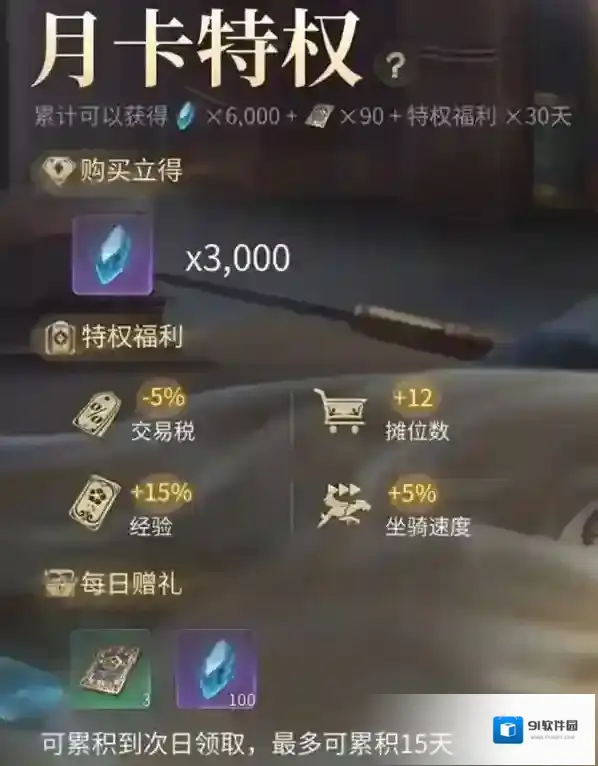 月卡特权:激活后获得额外15%经验加成,适用于绝大多数任务与战斗。