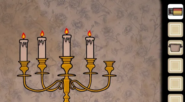 3、过去:可以移动后搜刮屋子拿到“冷汤”和“蜡烛”,将蜡烛放在烛台上用火柴点燃