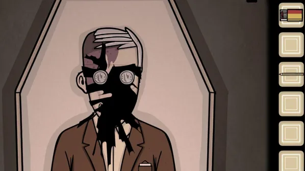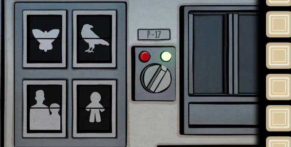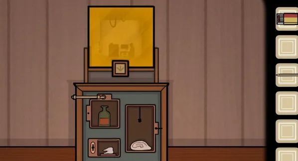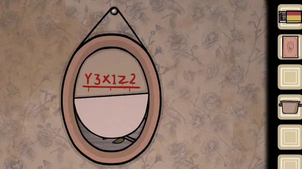 过去:输入排风扇上的时间场景发生变化,Albert的遗像摔在地上拿里面的钥匙开抽屉获得面具,在镜子前戴上面具,将墙壁上的图案顺序告知未来