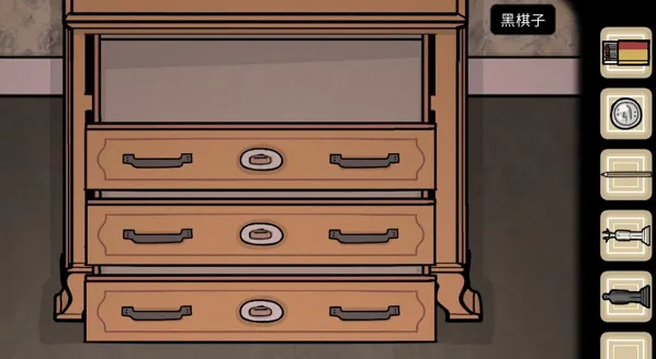 过去:根据时间调整闹钟房间会震动起来,点击花瓶打碎拿到钥匙,打开抽屉获得西洋棋,将西洋棋放到棋盘上。