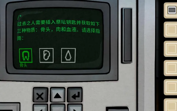 未来:确认拿到肉后开启血的机关,根据字母顺序点击机关