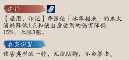 通用,印记每张使「冰华招来」的鬼火消耗降低1点和使自身受到的伤害降低15%,上限3张。