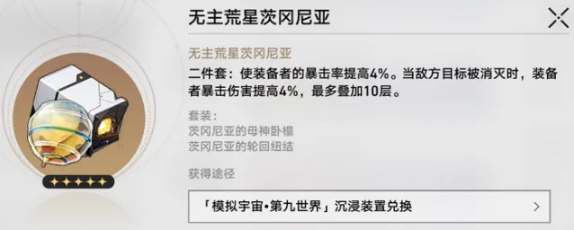 荒星2目前算是虚构叙事限定,只有虚构叙事这类小怪多的环境中才能吃满,满层后可提供40%暴伤加成,上限强度很高,非常在适合虚构中使用。
