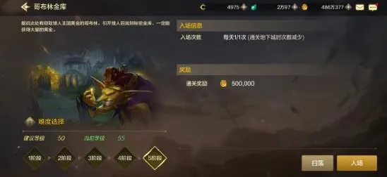 委托任务中的哥布林金库副本,每10级开启一个阶段,共5个阶段,分别对应获得游戏币为6w、14w、24w、36w、50w。这个副本每天只可以打一次,所以我们要尽快升级,打高阶段的每天必须做。切记不要扫荡,所有委托任务扫荡收益减半。