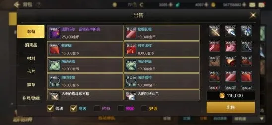 在游戏用,刷图我们会获得大量的蓝、白品质的无用装备,除了分解,我们也可以出售获得游戏币,装备等级越高,价格越贵。这个我们尽量在游戏后期出售,前期分解,获得无色晶块,保障无色技能消耗。