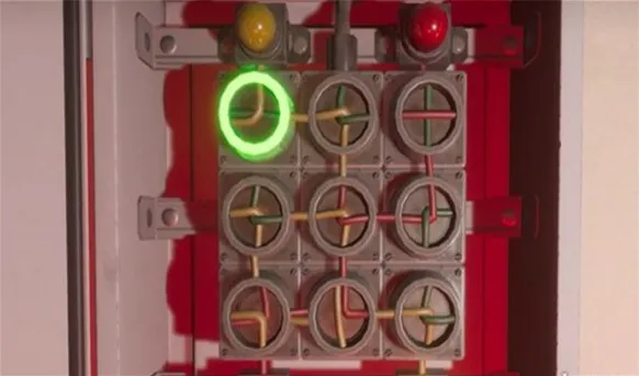 然后就能去解开上面的谜题了,这个玩意就是一个移动电线,让电线连通,两个灯都亮起来就能进门了。