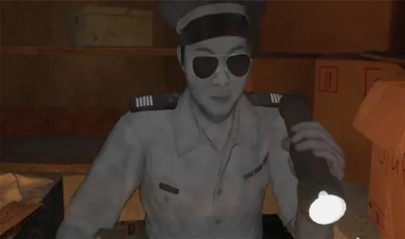 可以看到教官已经变成了鬼在这里巡逻,浑身冒着黑气的那种,等他走了之后往里面的房间去。
