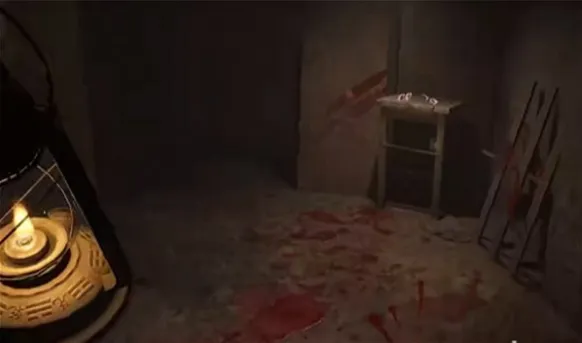在房间里能发现大量的血迹,红色的地面确实挺有冲击力,随后剧情一闪,第一章的无头女鬼来追杀了。