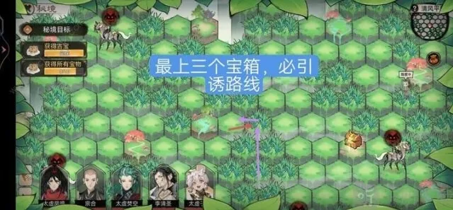 2、但是,只要我们躲进草丛之后,我们完美隐匿啦,雷麟马也看不到我们啦,所以想要完美通关,那么只能智取啦,要充分利用草丛来调动妖怪。要清楚本关的目标需要我们拿到古宝。