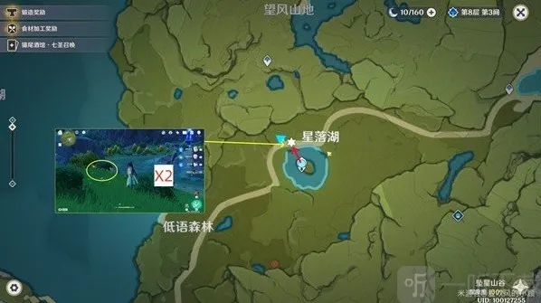 6.采集点位于星落湖位置,传送至下图七天神像处,共2朵