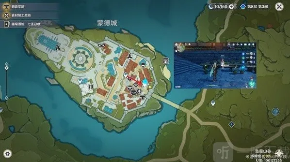 2.采集点位于晨曦酒庄右上角(东北方向)位置,传送至七天神像处,风车菊均位于神像附近,可参考标点顺序采集,共9朵