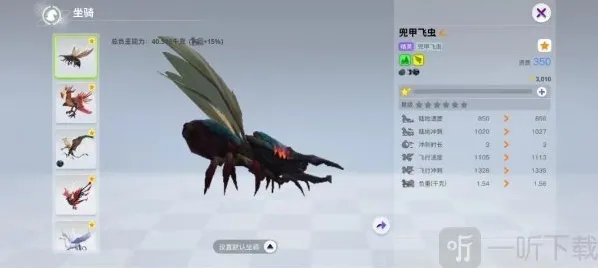 兜甲飞虫是贝塔星的精英飞行坐骑,其饲料制作需要荧光石+花生。捕捉至少需要56个白色饲料。