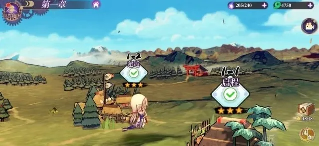 点1-2关卡然后旋转角度,点击前面的神社就会触发剧情