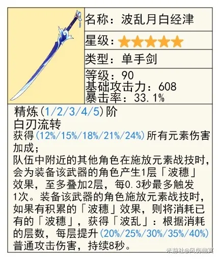 虽然高基础攻击没用,但是爆伤加成和高额的元素加成,已经是一把很强的武器了。