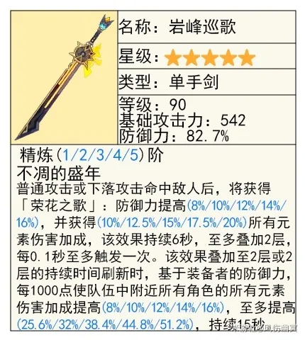 这把可以当做站场专武的下位了,高额爆伤提升,加上无条件防御力提升,而且自己也是岩的,普攻特效可以翻倍提升。
