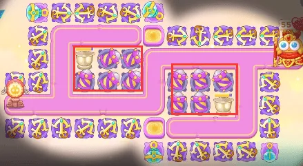 2、开始的时候在右上角位置一个船锚,有怪打怪没怪打障碍物,障碍物打下面的花坛。