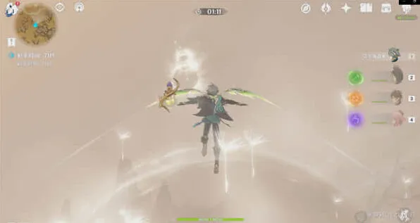 利用空中的风圈和四叶应飞到终点,终点处是一个珍贵宝箱。