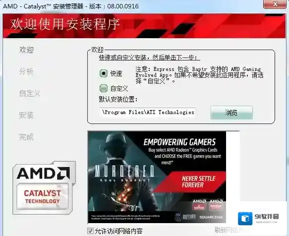 6、弹出安装界面,点击下一步(这个是AMD的显卡提示,如果是NIVIDA的显卡,也一直点下一步最后安装就可以了)