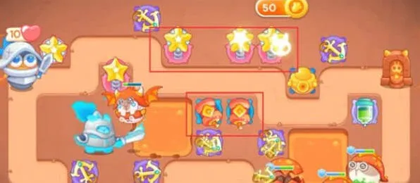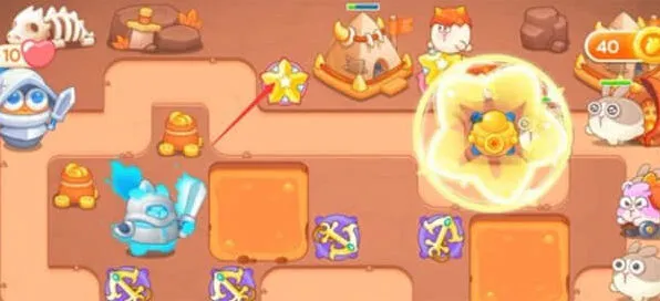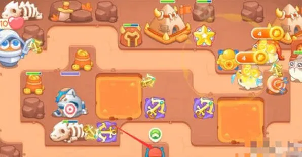 4.当宝箱被清理掉后会出现一个乒乓球拍塔,搭配下方的船锚塔清理更多的障碍物。