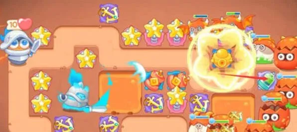 《保卫萝卜4》是一款充满惊喜的冒险游戏,谁能想到打碎宝箱会蹦出个乒乓球拍塔呢。小编建议这关要先清理地图隐藏道具,关键时刻能救命。