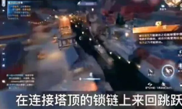 4、之后我们在连接塔顶的锁链上来回跳跃