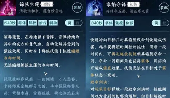 初绽:单体、瞬间、大量回复技能。对低于百分之30血量的队友,还会额外增加15%的治疗量。