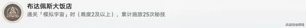 通关模拟宇宙时(难度2及以上),累计施放25次秘技。