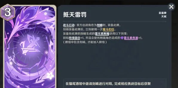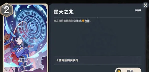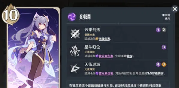 刻晴的天赋卡同样具有无需换人直接打伤害的能力,在前期没有较好换人手段卡在手上/场面上的时候也有更多空间。加上本身刻晴的元素爆发伤害很高,一般带刻晴的时候我会推荐再带个星天之兆,或者白垔之术,毕竟场上待的时间越久越危险,这类3充能才打爆发的角色尽可能通过简单的手段获取充能最安全,避免满充能被人先秒了。
