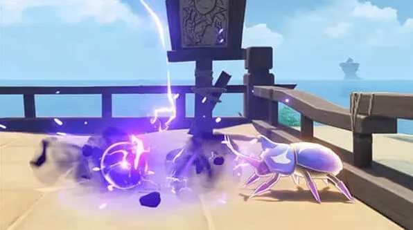 小巧灵敏的鬼兜虫。倾向使用远程攻击,可以施放雷弹:将雷元素的力量凝聚为一枚弹丸,一段时间后将弹丸击向对手。