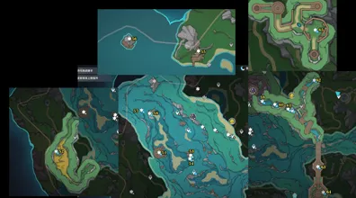 6、(51-65),15颗水神瞳被分成了5个不同的区域,玩家们可以根据这些区域的不同,来选择自己想要的地方,然后去采集。