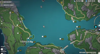 5、枫丹动能工程科学研究院区(41-50),该研究所主要位于芒索斯山东麓的附近,少数几个水神瞳位于中部和右侧。