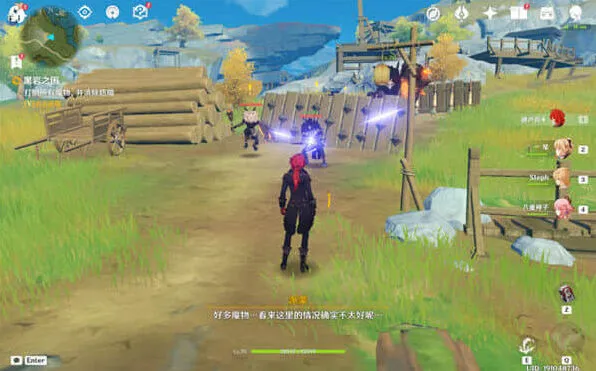 两只射手丘丘人,两只小丘丘人,一只回血的丘丘萨满,两只岩盾丘丘暴徒,较难处理。建议带上大剑角色,路障也要一并清理掉。