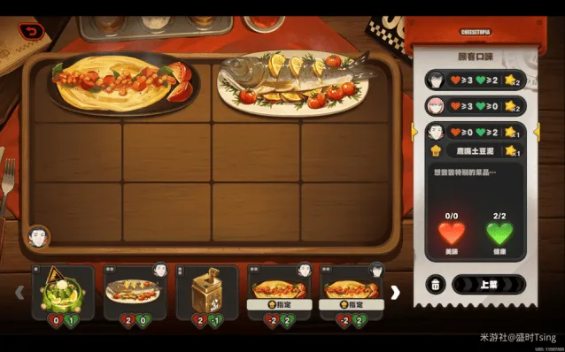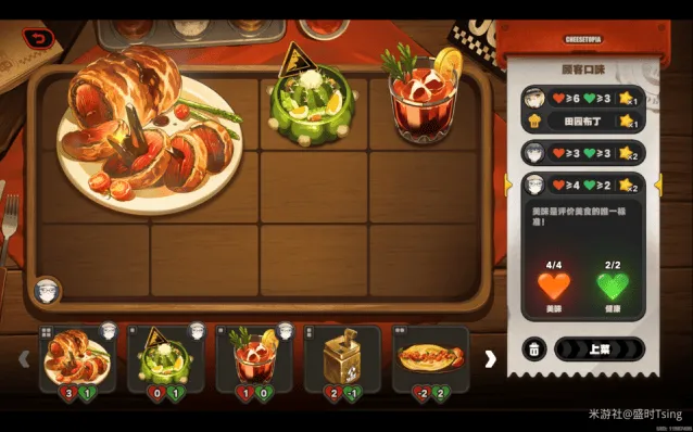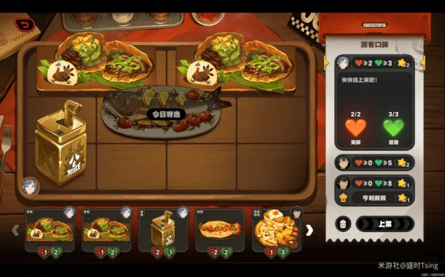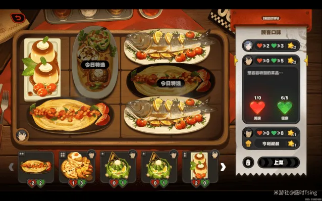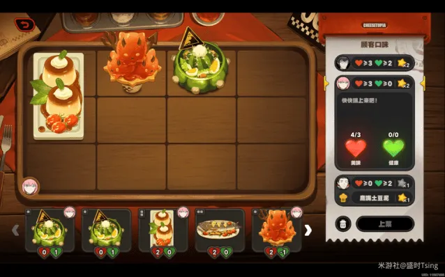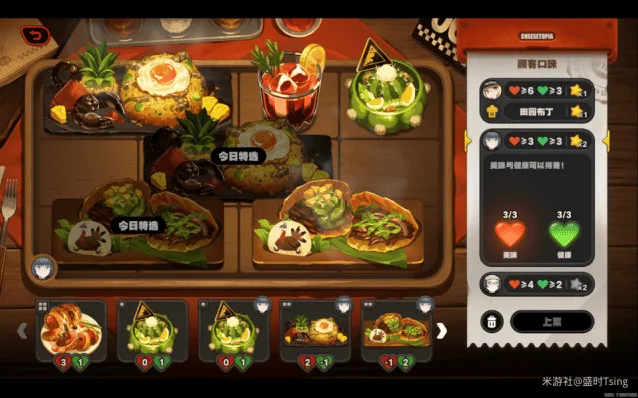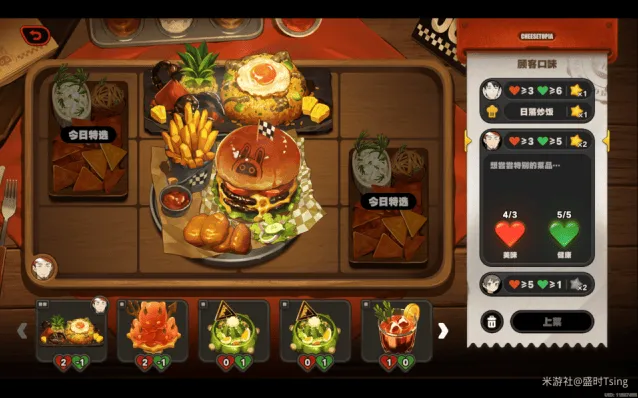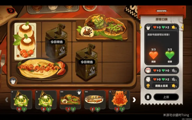 完成今日营业后,可解锁菜品「亨利叔叔的坏主意」、「风滚玉米片」,餐厅装饰「置物篓」、「无线电视」、「咖啡硬糖」、「多肉盆栽」: