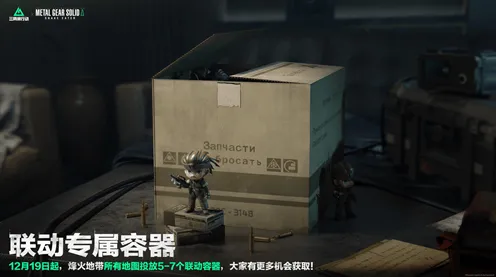 12月19日起,,烽火地带所有地图都将投放5~7个联动容器,希望增加更多的联动容器能让大家能有更好的体验。搜索联动容器就有机会获取「手办-裸蛇」与「手办-夏娃」。完成联动活动任务,必得「手办-夏娃」!