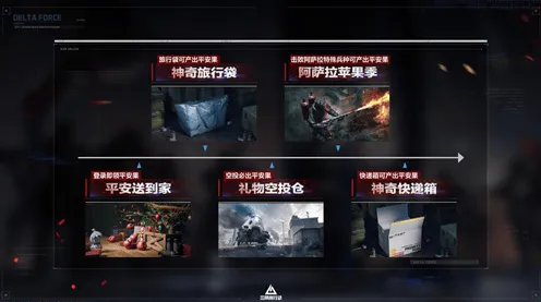 平安果可通过多个途径获取,除暖冬节登录活动外,各位干员可在烽火地带模式中搜索神奇旅行袋、礼物空投仓、神奇快递箱等容器,均将有概率获取平安果。