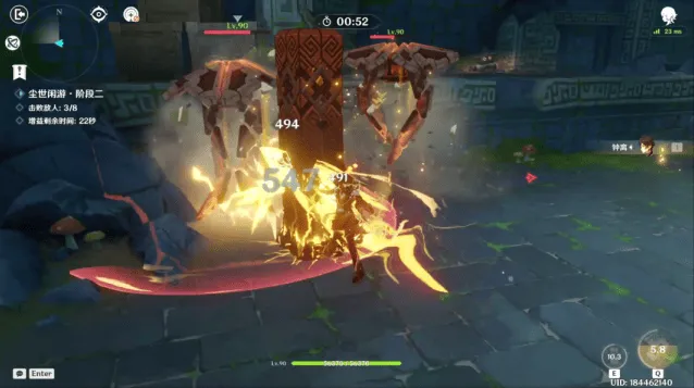 第二波会出现三个遗迹机关,第二波敌人拥有较高的移动速度,并且有钻地无敌帧,不过他们的输出弱于第一波敌人,只要注意不被他们包围即可。他们同样只能承受四次冲击波。在普通的同时,使用大招可以限制他们的行动。确保尽快消灭他们。