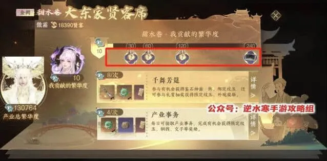 《逆水寒》是一款模拟经营游戏,产业玩法的繁华度积累变快了,每次事务给4点比以前翻倍,小编觉得这对刷称号和主页背景的小伙伴来说是个提速的好事,不用再磨那么久了。感兴趣的小伙伴们与小编一起看看吧。